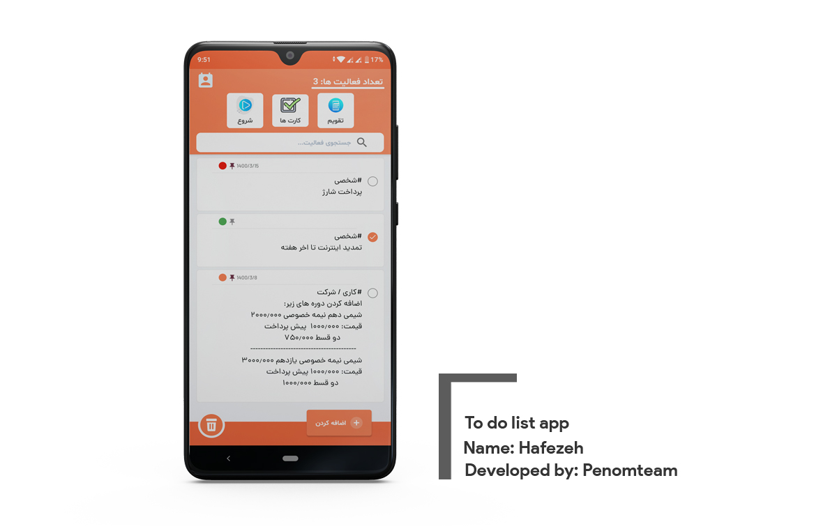 ما در پنوم تمام تلاش خود را می کنیم تا ارزان ترین قیمت ممکن و بهترین کیفیت و همچنین با بهره گیری از به روزترین تکنولوژیها در صنعت نرمافزار دنیا پروژهای کامل و مدرن را تقدیم شما عزیزان کنیم.